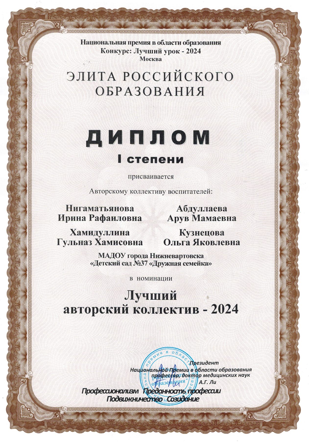 Диплом 1 степени в конкурсе "Элита Российского образования" (Просмотр)