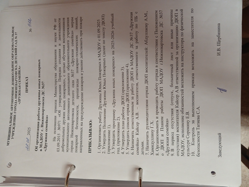 Приказ №512 от28.08 2025 г. "Об организации работы дружины юных пожарных в МАДОУ г. Нижневартовска ДС №37 "Дружная семейка (Просмотр)